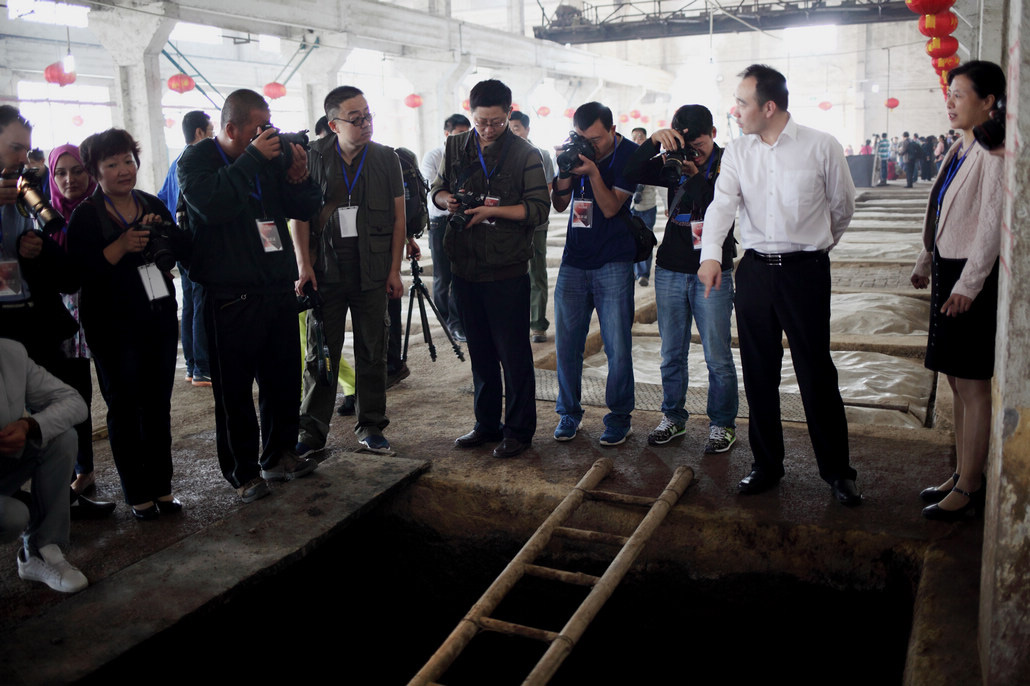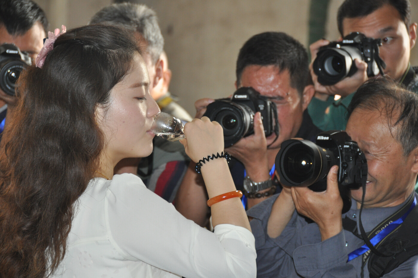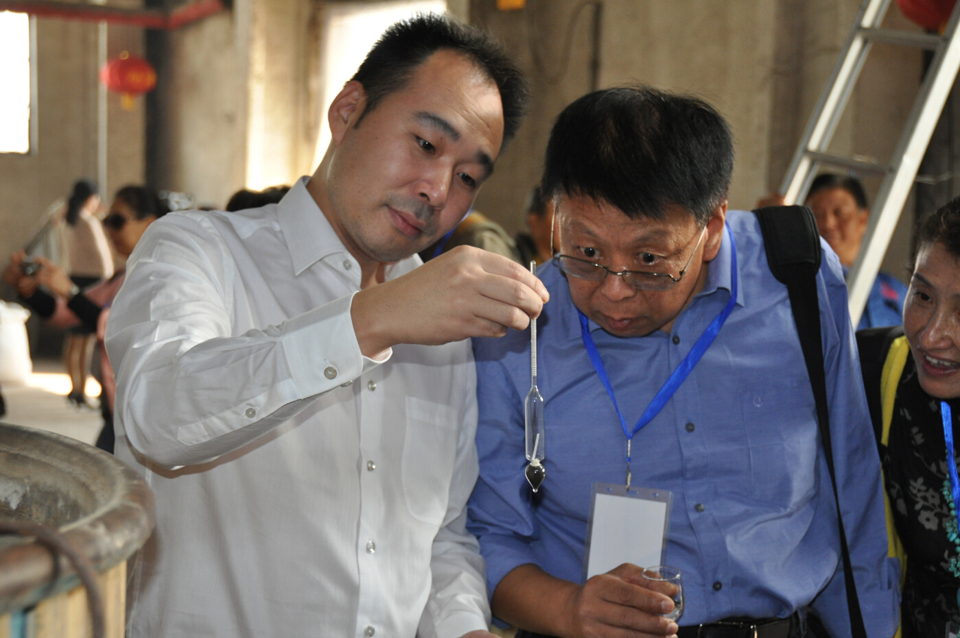 參賽的各位朋友們在公司講解員的介紹和引導下,了解了心酒的發(fā)展歷程,來到了糧食酒生產車間。生產車間熱氣騰騰的工作場面,調動起了早已按捺不住的創(chuàng)作沖動,紛紛拿起手中的長槍短炮拍個不停。他們尋找不同角度,努力拍到自己想要的畫面,或站、或蹲、或趴在地上,或攀上高處,或讓工人放慢操作速度,或讓我們的美女講解員臨時客串起了“模特兒”,就連董事長也未放過,或合影,或當講解員,或端起酒杯一起品嘗熱騰騰的原酒。