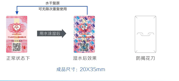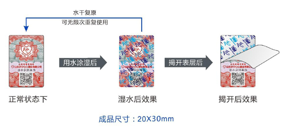 1、用水等液體涂抹標(biāo)簽表面后會顯示深藍(lán)、淺藍(lán)色心酒字樣,水干后可復(fù)原,可重復(fù)涂抹顯示。